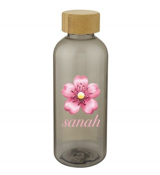 Jednościenny bidon z tworzywa sztucznego pochodzącego w 100% z recyklingu z elegancką bambusową pokrywką. Wolna od BPA, przetestowana i zatwierdzona zgodnie z niemiecką ustawą o bezpieczeństwie żywności (LFGB). Sprawdzona i zatwierdzona pod kątem zawartości ftalanów zgodnie z przepisami REACH. Użyty bambus pochodzi ze zrównoważonych, ekologicznych i społecznie odpowiedzialnych źródeł. Pojemność 650 ml. Zaleca się mycie ręczne. Zapakowany w kartonowe pudełko upominkowe wykonane z materiałów pochodzących z recyklingu. Plastik PET z recyklingu, Drewno bambusowe, Polipropylen.