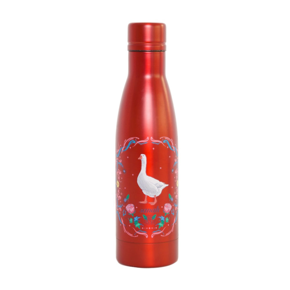 Podwójne ścianki wykonane ze stali nierdzewnej stopnia 18/8, z izolacją próżniową, a ścianki wewnętrzne pokryte są powłoką miedzianą. Oznacza to, że można przechowywać napoje gorące lub zimne w zależności od potrzeb. Butelka posiada dekoracyjne wykończenie.