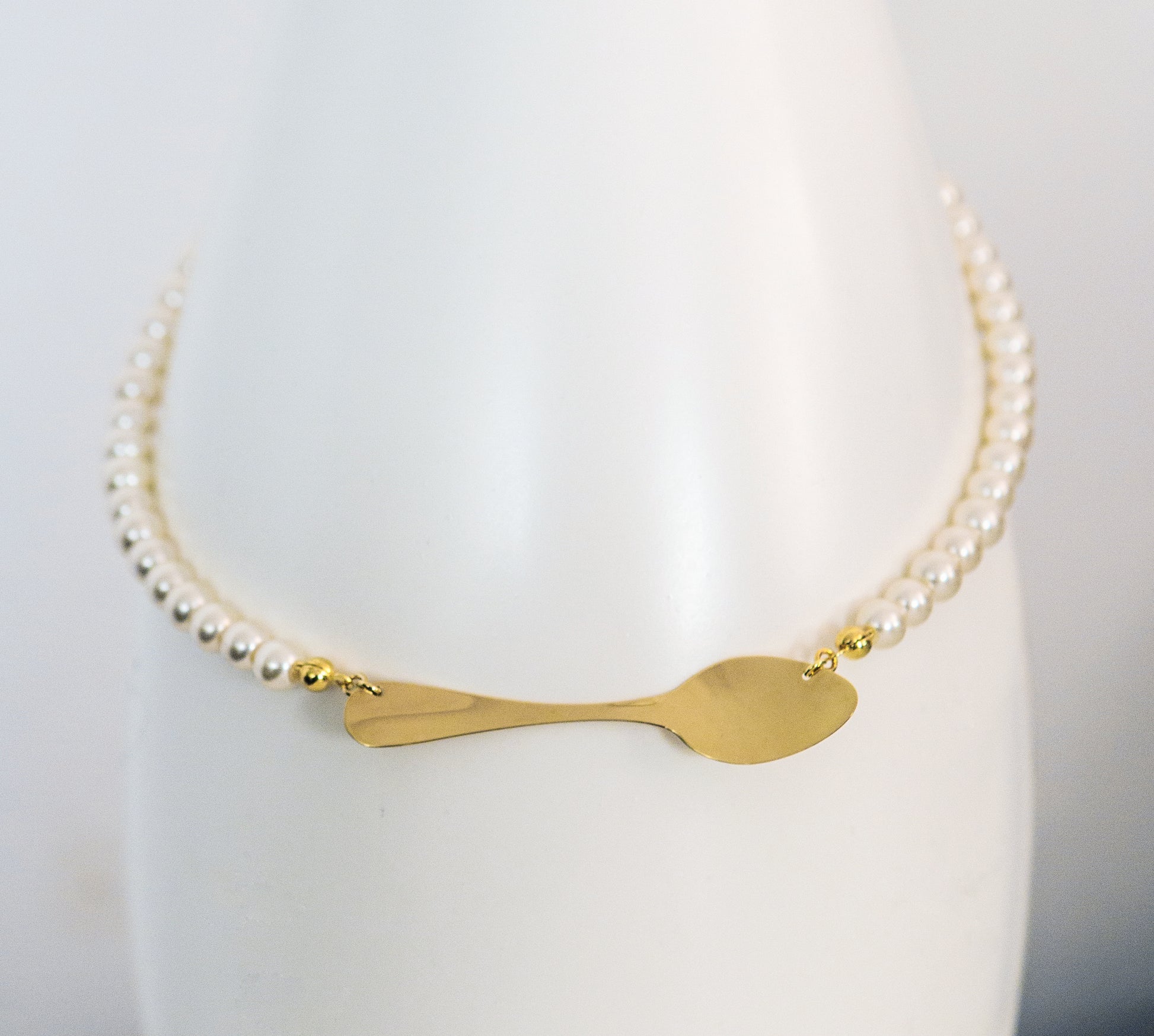 Materiał : sztuczne perły, zawieszka wykonana ze srebra pozłacanego