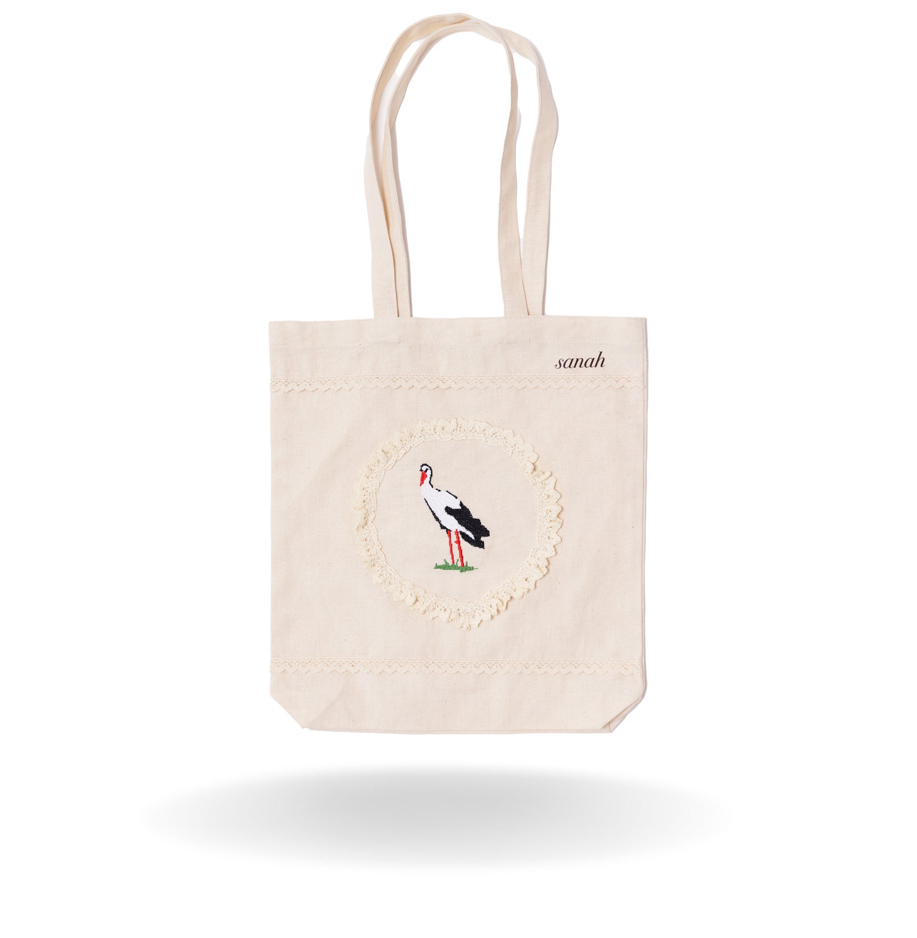 Torba z koronką i haftem beżowa "Bocian"