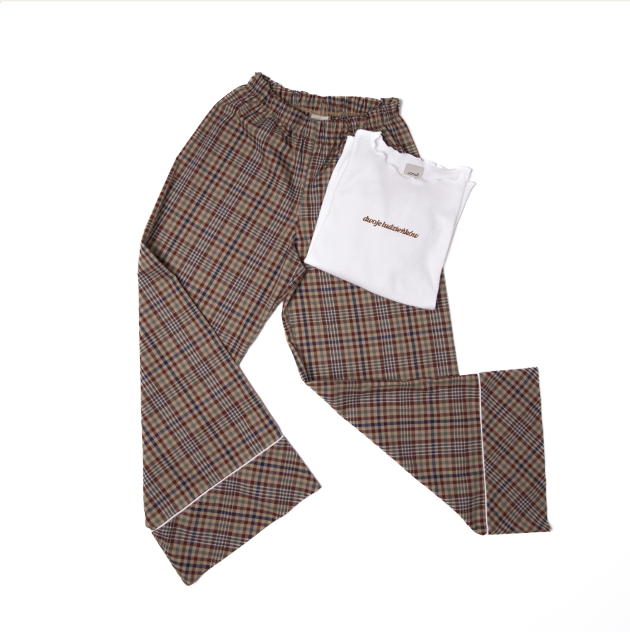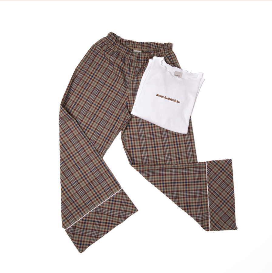 - zakończone ozdobna lamówką, nogawka lekko rozszerzana